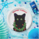 Black cat | Meowy Catmas Holly berries Christmas Paper Plate