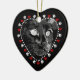 A beautiful black cat 'Merry Christmas' heart ornament. Ornament features a black cat illustration digital art in black and white, with red heart accents and white paw prints on the front. The back of this ornament has a paw print and two red hearts with dotted heart frame. The back reads Merry Christmas, which you can change in the template field area on the page if you would like to add your own greeting. Also enter the current year for the bottom of the ornament. Makes a wonderful gift for family or friends or as a new addition to your holiday ornament collection! This design is available in our store also as a personalised pet name ornament , and also on other shapes and styles of ornaments, greeting cards, stamps, cards and more! Please visit our store for additional animal styles and gift products.