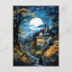 In the embrace of a tranquil night, a black cat sits on a winding cobblestone path, gazing upon a picturesque village. The black cat’s silhouette contrasts beautifully against the luminescent night sky, adding mystery and charm to the scene. A kaleidoscope of autumn leaves, in warm shades of amber and gold, and a myriad of flowers border the path. The cozy cottages nestled amongst the trees exude a sense of warmth, with golden light spilling from their windows, suggesting the quiet comfort of homes filled with life. The world is still, save for the soft whisper of the night breeze and the distant hush of the woodland, inviting a moment of reflection and peace. generativecontent