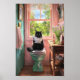 Black Cat on a Bathroom Seat Reading Papers Poster