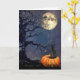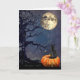 A fluffy, black cat sits on a pumpkin under a spooky tree, while gazing at the full moon on this lovely Halloween card. Very cute and charming card for the spooky night.