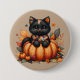 Black Cat on Pumpkin with Autumn Quilt Pattern 7.5 Cm Round Badge