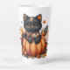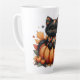 Black Cat on Pumpkin with Autumn Quilt Pattern Latte Mug