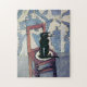 Black Cat on Wooden Chair Jigsaw Puzzle