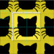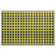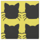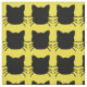 Yellow background with a pattern of black cat silhouettes. Lots of whiskers!
