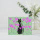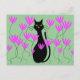 Black Cat Pink Flowers Cards