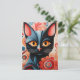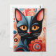 An adorable black cat with pink, blue whimiscal flowers AI generated art