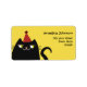 Black Cat Cartoon Funny Birthday Party Address label . Humourous, trendy, adorable.