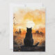 Adding a touch of intrigue to the design is the background photo of the invitation—a captivating scene featuring a black cat gazing at a charming autumnal town as the sun sets. This modern twist on Halloween aesthetics captures the essence of the season while infusing it with a contemporary and artistic flair.
