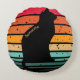 Black Cat Silhouette on Distressed Rainbow Round Cushion
