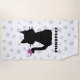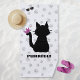 Enjoy this cute beach towel featuring a whimsical black kitty cat silhouette with a pink butterfly on its tail and the words "Purrfect" over a light grey paw printed background Personalise it, change the white background colour to your favourite!
