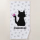 Black Cat Silhouette Pink Butterfly on Tail & Paws Beach Towel