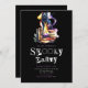 This invitation captures the essence of Halloween with a touch of enchantment. Against the dramatic black backdrop and alternating lines of stark white and light purple text, the words "spooky party" are presented in a horror movie cut-from-magazines letter font, adding an element of surprise and a touch of eerie spookiness to the overall design.