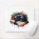 Black Cat Sleeping on Book with Flowers Mouse Mat