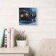 Black Cat Snowy Sleigh Ride Christmas Decor Square Wall Clock