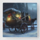 Capture the magic of a winter wonderland with this enchanting Christmas design. Featuring a wooden cart nestled in a snowy scene, this decoration brings holiday charm to any setting. Embrace the spirit of the season with this delightful addition to your decor.