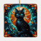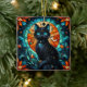 Black Cat Stained Glass Graphic Ceramic Ornament