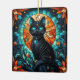 Elevate your holiday decor with our Black Cat Stained Glass Graphic Ceramic Ornament. Featuring a striking black cat design inspired by stained glass art graphic in shades of teal, orange and black, this ornament adds a unique and mystical touch to your tree or home. Perfect for cat lovers and those who appreciate artistic, gothic-inspired decor, it’s an eye-catching addition to your seasonal celebrations.