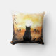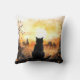 Black Cat Staring at Setting Sun Fall Halloween Cushion