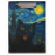 Black Cat Starry Night Van Gogh Cat Selfie Clipboard