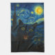Black Cat Starry Night Van Gogh Cat Selfie Tea Towel