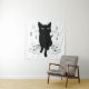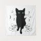 Black Cat Surrounded by Whispering Notes of Music Tapestry