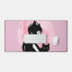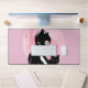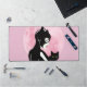 Elevate your workspace with this stylish mouse pad featuring a mysterious character in a black cat costume holding a black cat. Set against a soft pink background and a dreamy moon, this design blends cute and gothic aesthetics—perfect for cat lovers, anime fans, or anyone who enjoys cosy, creative desk setups.