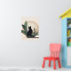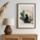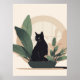 This minimalist black cat illustration sits peacefully among soft botanical elements, creating a balanced and soothing composition. The warm neutral tones and clean shapes make it easy to blend into modern, boho, or minimalist interiors.