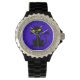 This custom wrist watch features a black cat.