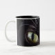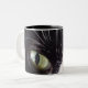 Black Cat, White Whiskers, Green Eyes Two-Tone Coffee Mug