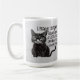 A humorous black cat mug with a saying "I have anger issues and a serious dislike for stupid people"