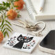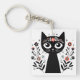 Black Cat with Big Eyes Surrounded by Flowers Key Ring