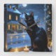 Black Cat With Christmas Lights Holiday Square Wall Clock