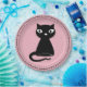 Black Cat with Curled Tail customisable plates. Cute black cat sits with its tail curled and looks at you with its huge eyes. Currently there's a pink background, but you can remove it and leave it white or add the colour or design of your choice. You can change the image, add your own text and make it exactly what you want. It's easy with Zazzle's customisation tools. Look for coordinating, customisable kitchen and dining and home decor products in our store.