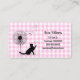 Black cat silhouette with dandelion and seedlings on a pink and white gingham background.