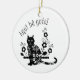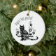 Black cat with flowers and Portuguese expression Ceramic Tree Decoration