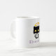 A mug with a cute black and white angel kitty cat with a golden halo above her head, drawn in cartoon style. Personalise with a name or other text.