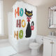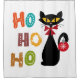 Colourful abstract Mid Century style illustration with black cat and Ho Ho Ho text design decoration on white background