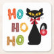 Black cat with Ho Ho Ho text design Square Paper Coaster