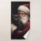Black Cat With Santa Claus Festive Christmas Bath Towel Set