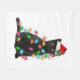 Black Cat With Santa Hat Christmas Lights Fleece Blanket