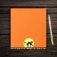 Image is from my original drawing. This spooky black cat with green eyes is walking across the top of a black fence. There is a huge yellow moon against an orange sky in the background. See my store Art by MAR for matching products with this design.