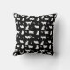 A stylish throw pillow for pet lovers featuring a cute and trendy pattern of white cats in different poses and paw prints on a black background.