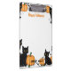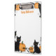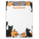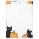 At the centre of the design is a large, glowing orange pumpkin with an intricately carved, mischievous grin. The pumpkin's light casts a soft glow, creating a warm, eerie atmosphere. Surrounding the pumpkin are sleek, black cats with piercing yellow or green eyes, their fur shimmering in the moonlight. Some of the cats are in playful, curious poses—one is stretching, another perched on top of the pumpkin, and a third is pawing at falling autumn leaves.