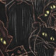 Black cats drawing with yellow eyes in an anamorphic tesselation.
