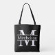 black cross bar Life Roman font monogrammed all over print tote bag