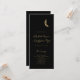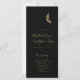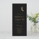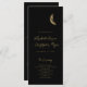 Black and gold celestial wedding program template featuring gold moon, stars, and text.