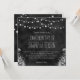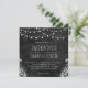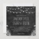 String of Lights Chalkboard © Sunny Mars Designs. Stylish, modern, elegant, classy, trendy, chic customisable formal or cute casual 5.25" x 5.25" wedding invitations with a beautiful black chalkboard design featuring bulbs of rope or string lights hanging above with a floral tropical design below.