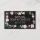 Natural looking flower and greenery arrangement on a chalkboard background. These business cards are for handmade, natural soap, candles and soy wax melts.