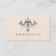 Elegant black and white chandelier on a light-beige background, interior design business card template with pink accent. The word design in pink is upside down, but it can be turned around if you like. If you need any help customising any of my designs, contact ArtOnWear designer.